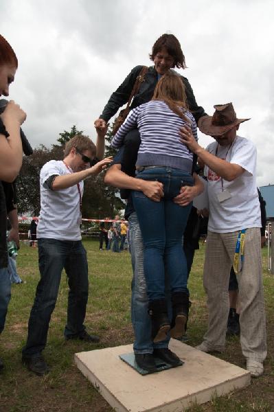 Niemniej emocji wzbudzała rywalizacja dorosłych. Sztandarową konkurencją naszego festynu było przeciąganie liny. Najlepsi okazali się tutaj pracownicy odlewni. Panowie, choć się nie przyznają, to na pewno ćwiczyli przed zawodami :)
